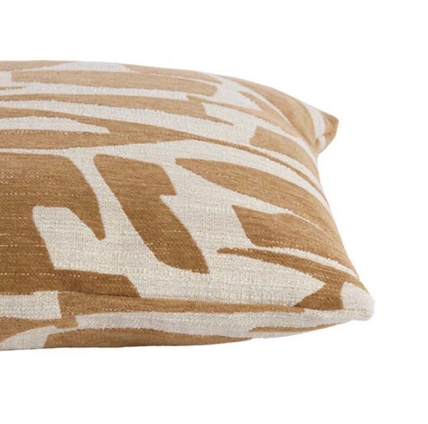 Mooi okergeel/ecru kussen met gave print.