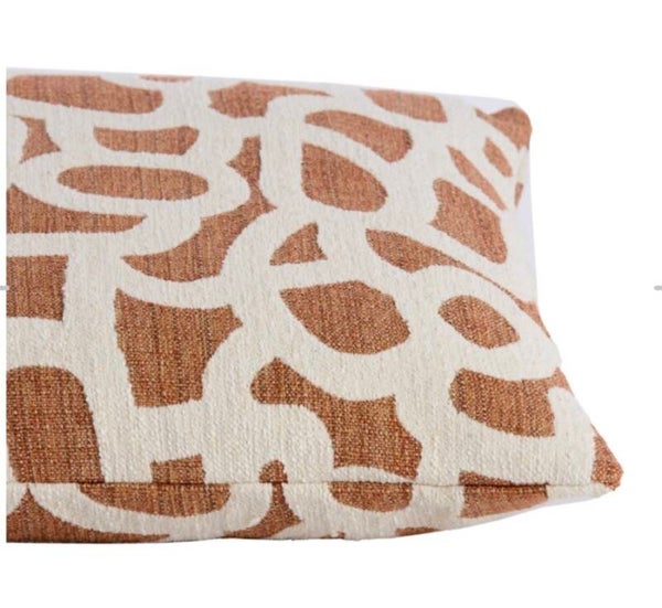 Mooi brique/ecru kussen met gave print.